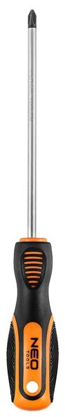 Набор NEO Tools 04-193 состоит из шести отверток с намагниченым жалом. Рабочая часть из чрезвычайно прочной хромваннадиевой (CrV) стали, которая подвергнута термообработке, благодаря чему получена требуемая твердость и стойкость к изгибу. Отвертки популярных размеров - шлицевые ( 6,5x150 мм, 5,5x100 мм, 5,5x38 мм) и крестовые (PH2x38 мм, PH1x100 мм, PH2x150 мм). В дополнение к отверткам в набор входит удобный держатель, благодаря которому Вы сможете подвесить набор и хранить его в одном месте. Двухкомпонентная рукоятка устойчива к воздействию химических веществ, масел и смазок отличается перфорацией, имитирующей отпечатки пальцев, что предотвращает скольжение отвертки при работе. Дополнительно отвертка имеет опору для большого пальца что уменьшает нагрузку на ладонь во время работы и облегчает быстрое вращение. Трехгранная форма рукоятки покрытой антискользящим материалом повышает комфорт закручивания/откручивания, что по достоинству оценит каждый профессионал. В верхней части рукоятки указан размер, что облегчает выбор отвертки для конкретной задачи. В подтверждение качества и надежности продукции производитель предоставляет сертификат TÜV и 25-летнюю гарантию.