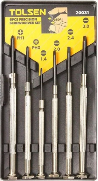 - Набор отверток Tolsen 6шт, SL, PH1, 75-90мм (20031)