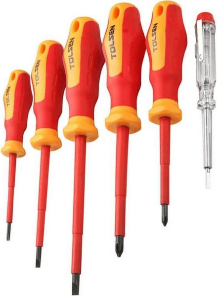 - Набор отверток Tolsen VDE 6шт, диэлектрические, PH, PZ, CrV (38013)