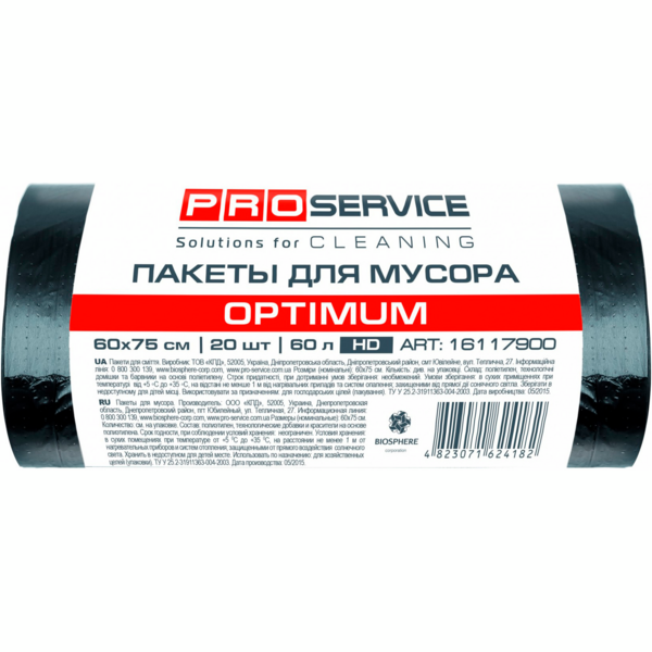 Похожие товары Пакеты для мусора Pro service Optimum HD 60л*20шт