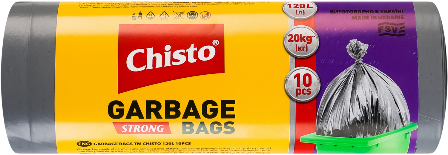Пакеты для мусора Chisto strong 120 л 10 шт