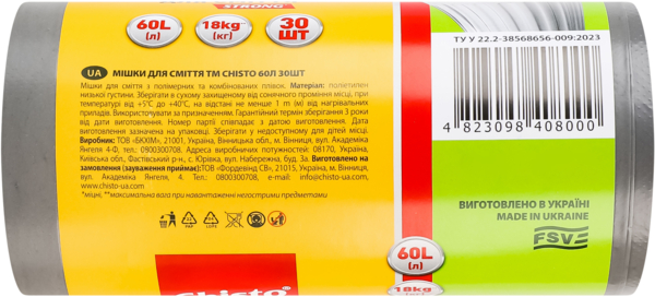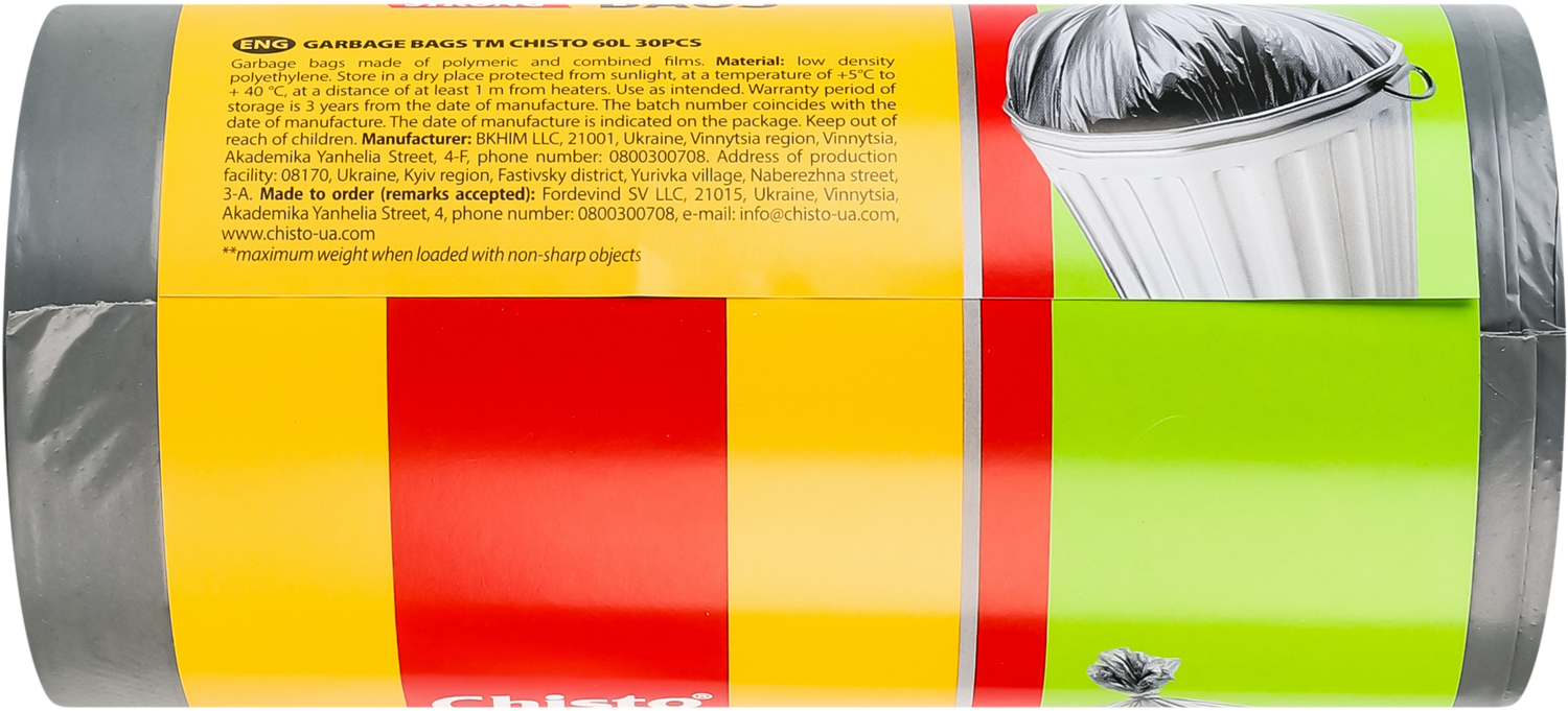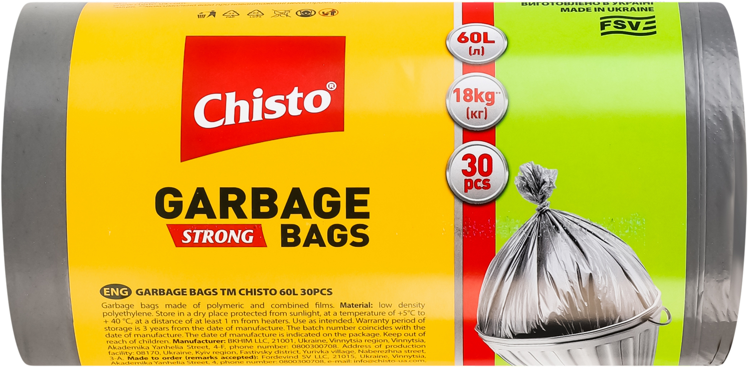 Пакеты для мусора Chisto strong 60 л 30 шт