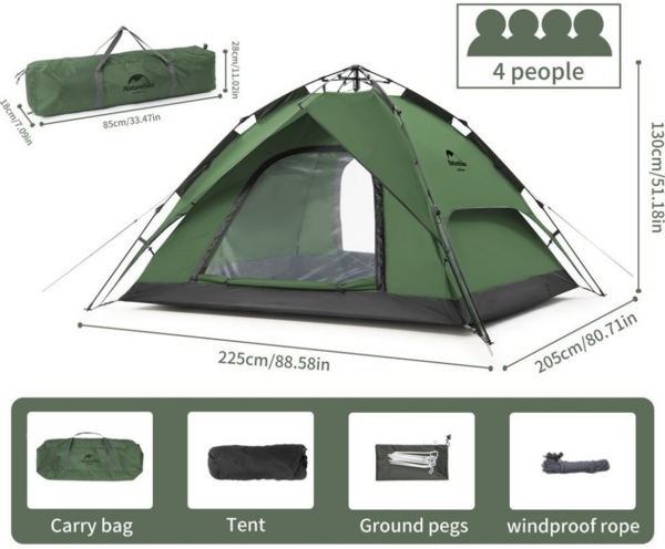 Палатка четырехместная автоматическая Naturehike NH21ZP008, темно-зеленая
