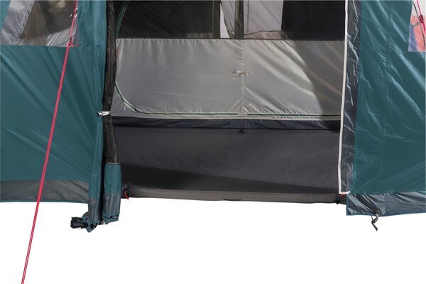 Ferrino Fenix 4 Petrol (91192MBB) - семейная туннельная палатка с тремя входами, просторным вестибюлем со вшитым полом и спальней со съемной перегородкой. Москитные сетки на входной двери обеспечивают защиту от назойливых насекомых. Система вентиляции Air Ventilation System обеспечивает постоянную циркуляцию воздуха, а также избавляет от образования конденсата. Фронтальные окна и панорамное боковое окно заполняют внутреннее пространство светом.