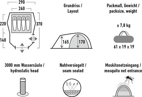 Характеристики Палатка четырехместная High Peak Tessin 4.1 Deep Forest (10380)