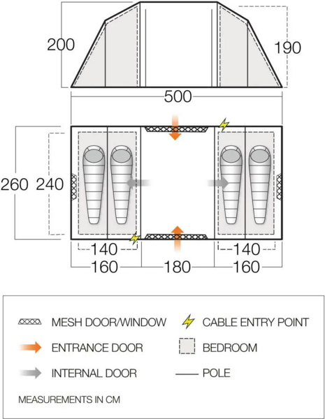 - Waterproof PE Groundsheet – пол из прочной ткани, который выдержит самых активных туристов и создает чистое и сухое место для хранения обуви и производного оборудования.