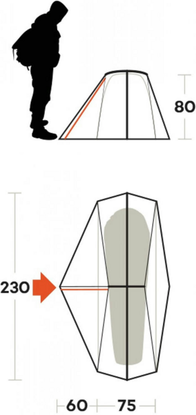 - Конструкция палатки является однослойной в торцах и двухслойной сбоку, где размещен тамбур. Такая конструкция помогает существенно снизить вес и значительно избежать проблем с конденсатом, свойственным классическим однослойным палаткам.