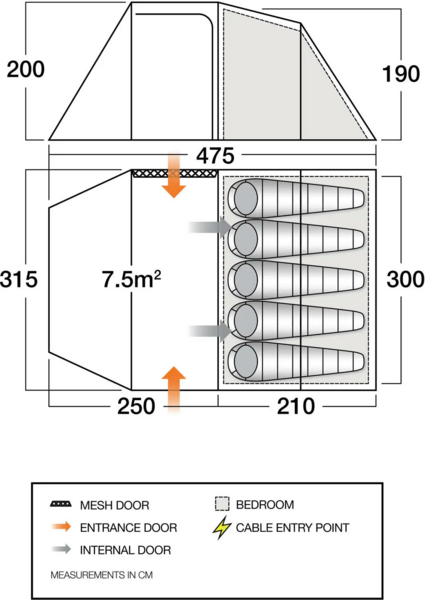 - Waterproof PE Groundsheet - пол из прочной ткани, которая выдержит самых активных туристов и создает чистое и сухое место для хранения обуви и походного оборудования.