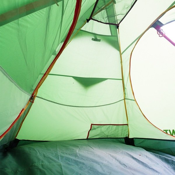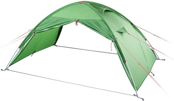- Удобная установка во время дождя: можно быстро поставить только тент (без внутренней палатки) и уже под прикрытием тента пристегивать внутреннюю палатку, которая остается сухой. Для короткого летнего похода можно брать с собой только тент и дуги, что существенно экономит вес и объем снаряжения.
