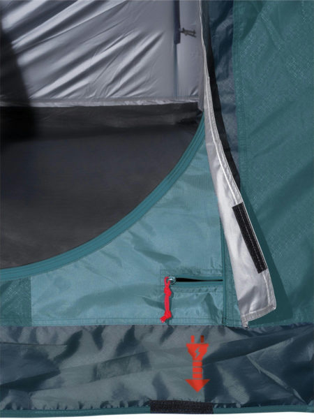 Ferrino Fenix 6 Petrol (91194MBB) - семейная туннельная палатка с тремя входами, просторным вестибюлем со вшитым полом и спальней со съемной перегородкой. Москитные сетки на входной двери обеспечивают защиту от назойливых насекомых. Система вентиляции Air Ventilation System обеспечивает постоянную циркуляцию воздуха, а также избавляет от образования конденсата. Фронтальные окна и панорамное боковое окно заполняют внутреннее пространство светом.