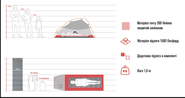 Палатка сверхлегкая одноместная с футпринтом Naturehike Cloud Up 1 Updated NH18T010-T, 20D, темно-зеленый