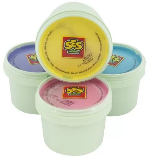 - В наборе: 4 пластиковые баночки с эко-краской. Цвета: голубой, розовый, желтый, сиреневый.