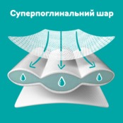 - Внутренний впитывающий слой с жемчужными микрогранулами, которые удерживают влагу Надежная сухость для кожи новорожденных