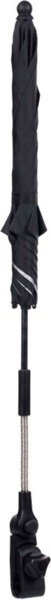 Держатель крепится вокруг рамы коляски. Имеет гибкую ручку, благодаря чему зонт можно поворачивать во все стороны и наилучшим образом защищать малыша от солнечных лучей.