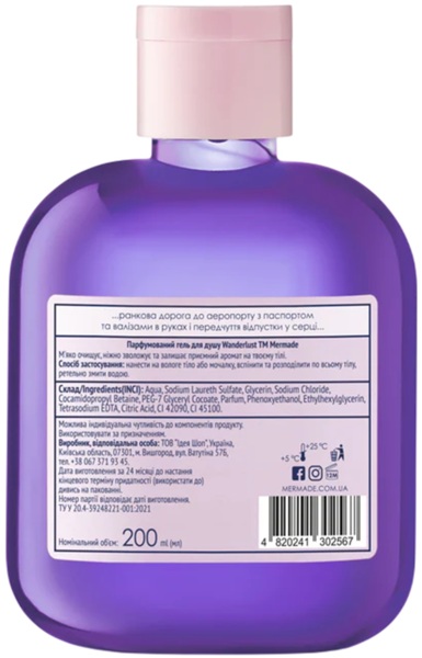 - Парфюмированный гель для душа Mermade Wanderlust 200 мл