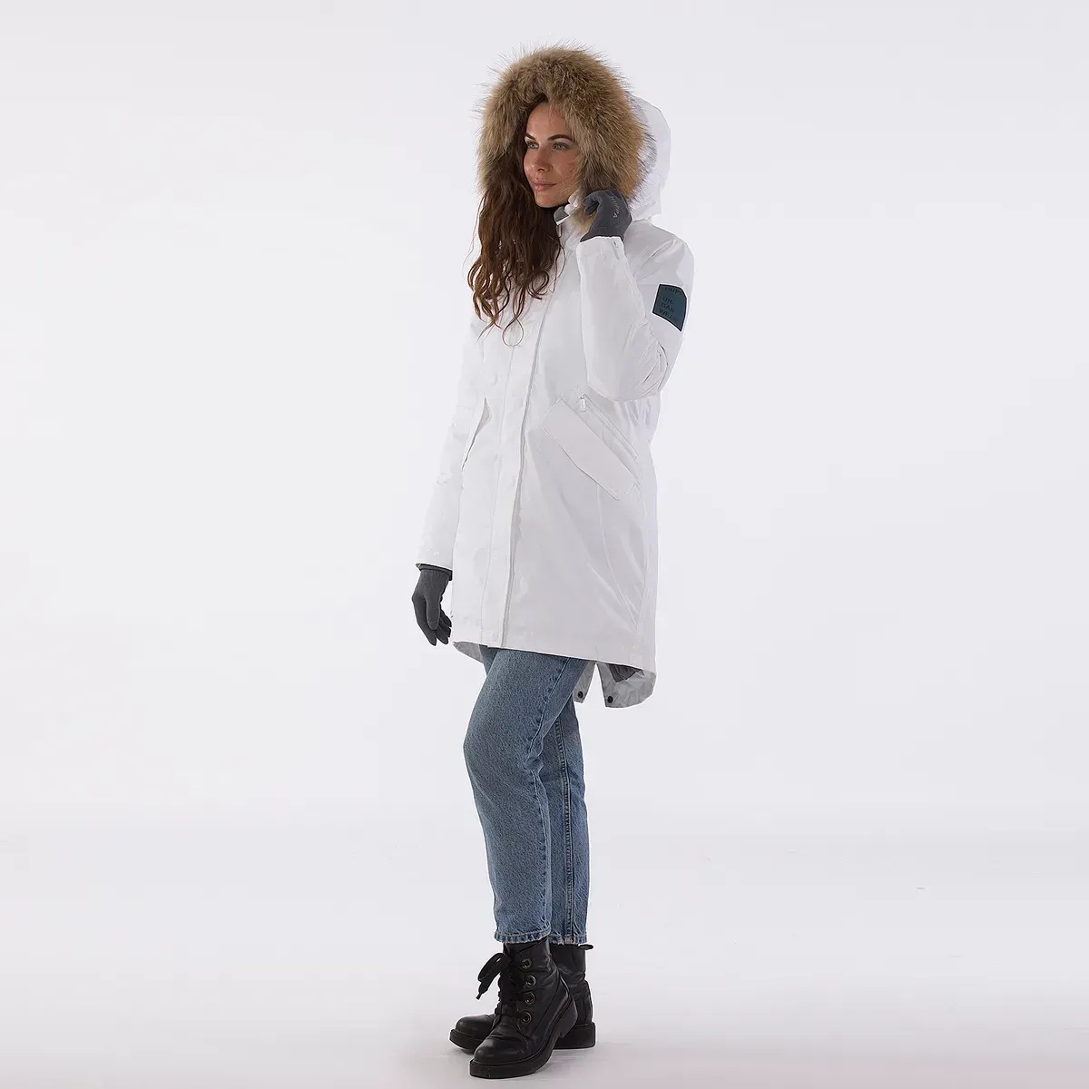 Vivian 1 представляет собой длинную куртку-парку, обеспечивающую защиту от холода, ветра и влаги. Высокая водонепроницаемость и воздухопроницаемость сохраняют комфорт при активном движении. Длинная задняя часть и съемный капюшон с натуральным мехом обеспечивают дополнительную защиту от непогоды.