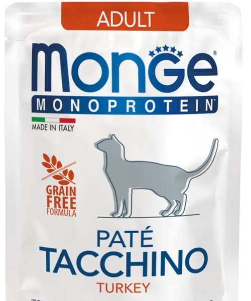 Характеристики Паштет для кошек Monge Cat Monoprotein Adult индейка 85 г