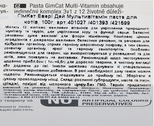 - Паста Gimborn GimCat Мультивитамин для котов 100 г