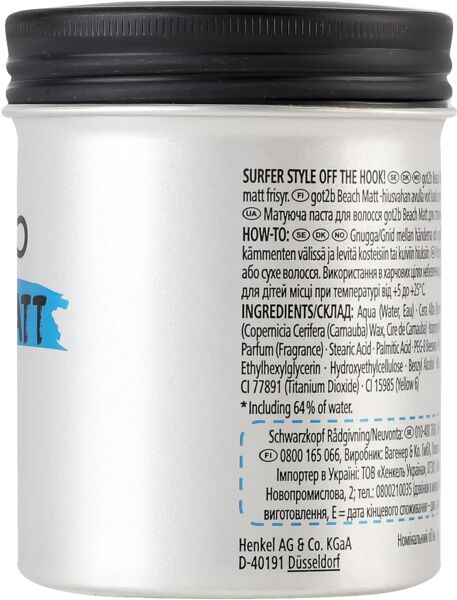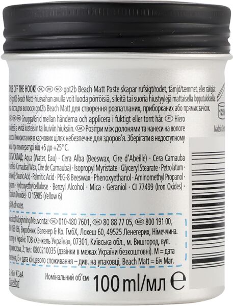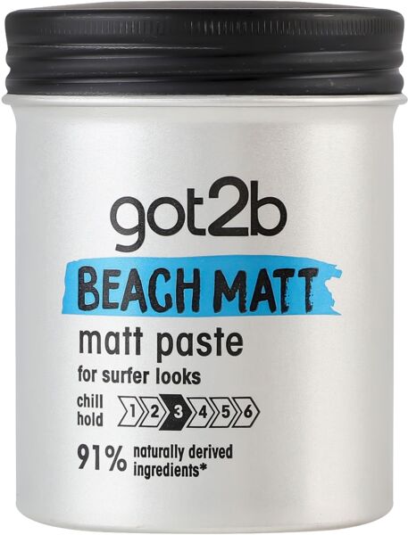 Паста Got2b Beach Matt создает матовый эффект на волосах и позволяет достичь заметной текстуры, придавая им вид пляжных локонов.