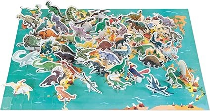Коробка также содержит 50 вымерших динозавров для создания 3D и размещения на карте. Затем дети могут использовать модели, чтобы активизировать свое воображение и креативность, принимая фигурки в большие приключения. Фигурки также идеально подходят для игр на память и рисования.