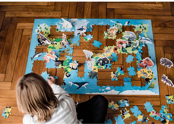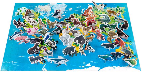 Этот удивительный гигантский образовательный пазл позволит ребенку узнать о находящихся под угрозой исчезновения животных. Этот пазл сопровождается учебным буклетом, чтобы исследовать виды животных и понять причины их исчезновения. В комплекте 200 элементов, а также 50 картонных животных, которые также должны быть собраны.