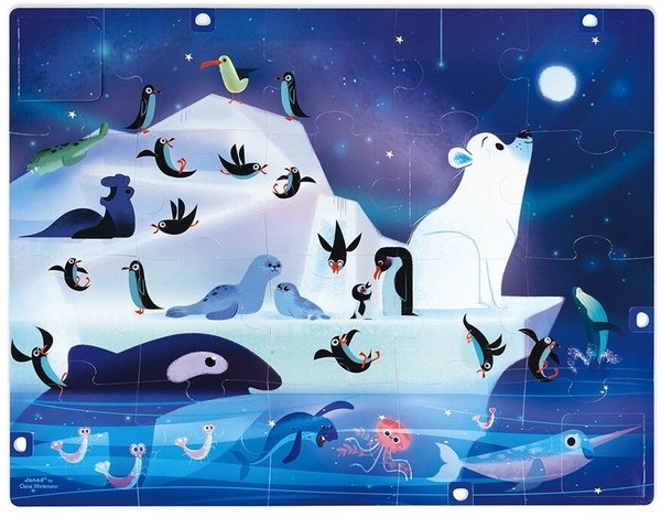Моя дочь без ума от арктических животных и местности полюса в целом. Еще наша семья приучила ее к собиранию пазлов, которые отлично улучшают мышление, сосредоточенность и мелкую моторику пальцев. Эти критерии являются главными в развитии каждого ребенка. Также данный пазл Janod Под звездами помогает малышу ознакомиться с окружающим миром и с животными. Он состоит из 20 элементов, которые достаточно крупные и удобно складываются в целостную картину. В нем присутствуют 8 невидимых неожиданностей. Сюда входят 5 элементов, которые двигаются и увеличиваются до размера пазла. А еще есть 3 окна со скрытыми картинками. Все они помогли произвести на мою дочь незабываемое впечатление. Этот вау-эффект и сейчас актуален. Взяла тут под свою ответственность и осталась довольна своей покупкой.