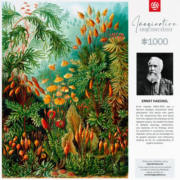 Good Loot представляет уникальный пазл с иллюстрацией "Muscinae" от Эрнста Геккеля. Этот пазл, состоящий из 1000 элементов, приглашает вас в мир красочных и детальных иллюстраций великого немецкого биолога и художника.
