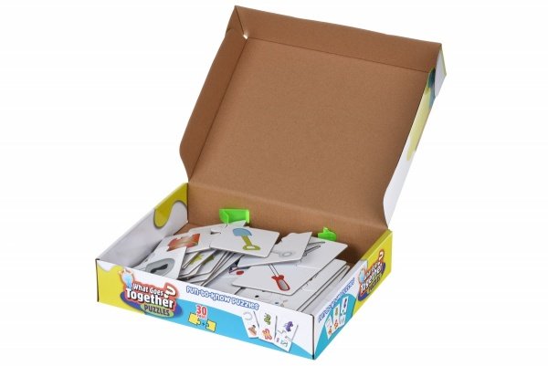 Пазл «Что должно быть вместе» - учебный набор, поможет детям устанавливать ассоциации и логические связи. Всего в наборе 60 фрагментов, из которых нужно собрать 30 ассоциативных пар. Фрагменты изготовлены из плотного, твердого картона. Их можно составлять неограниченное количество раз и они не повреждению.