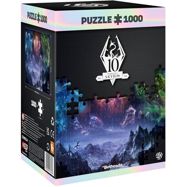 Пазл "Skyrim: 10th Anniversary" от производителя GoodLoot — это великолепное трибьют-издание, созданное в честь десятилетнего юбилея легендарной игры The Elder Scrolls V: Skyrim. Этот пазл с 1000 деталями погружает вас в эпический мир Скайрима, полный драконов, воинов и волшебства.