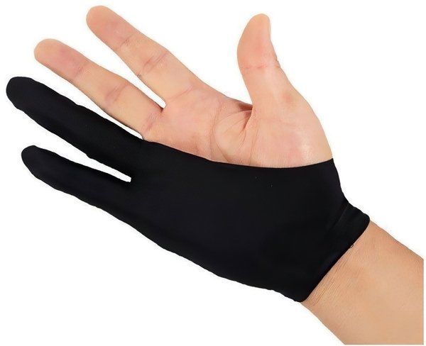 Работа за обе руки - Huion Artist Glove двумя пальцами. Включает одну единицу перчатки, которую можно использовать с обеих сторон, свободный размер, 20 см в длину, 8 см в ширину.