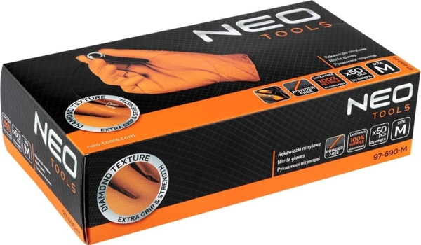 - Перчатки рабочие Neo Tools, перфорированные нитриловые, р.M, 50шт, оранжевые (97-690-M)