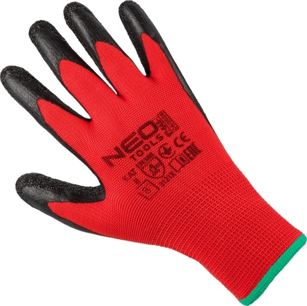 Перчатки рабочие Neo Tools, полиэстер с латексным покрытием, р.8, 12шт, красно-черные (97-645-8)