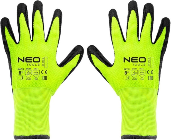 - Перчатки рабочие Neo Tools, утепленные, латексное покрытие, полиэстер, р.8, зелено-черные (97-613-8)