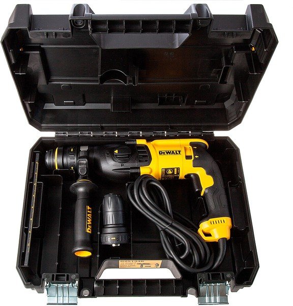Долго выбирал перфоратор и никак не мог определиться. У товарищей в основном DeWalt, правда, других моделей, но этот бренд они рекомендовали как долговечный. Пересматривая характеристики разных перфораторов, я остановился на DeWalt D25134K. Приобрел его на сайте магазина «Мойо» и был рад, что можно его забрать прямо с магазина, тем самым есть возможность проверки аппарата, с экономией на доставке. Имеет три режима: сверление с ударом, сверление и просто удар. Комфортен в использовании при наличие реверса и упора глубины. Инструмент сверхмощный и добротно сделан. В руках сидит очень удобно, даже не смотря на трехкилограммовый вес. Аппарат имеет достаточную силу удара, отдача в руки умеренная, меньше чем на перфораторах, с которыми мне приходилось работать на работе. Муфта немного тугая, при конкретных клинах, немного выкручивает руки.