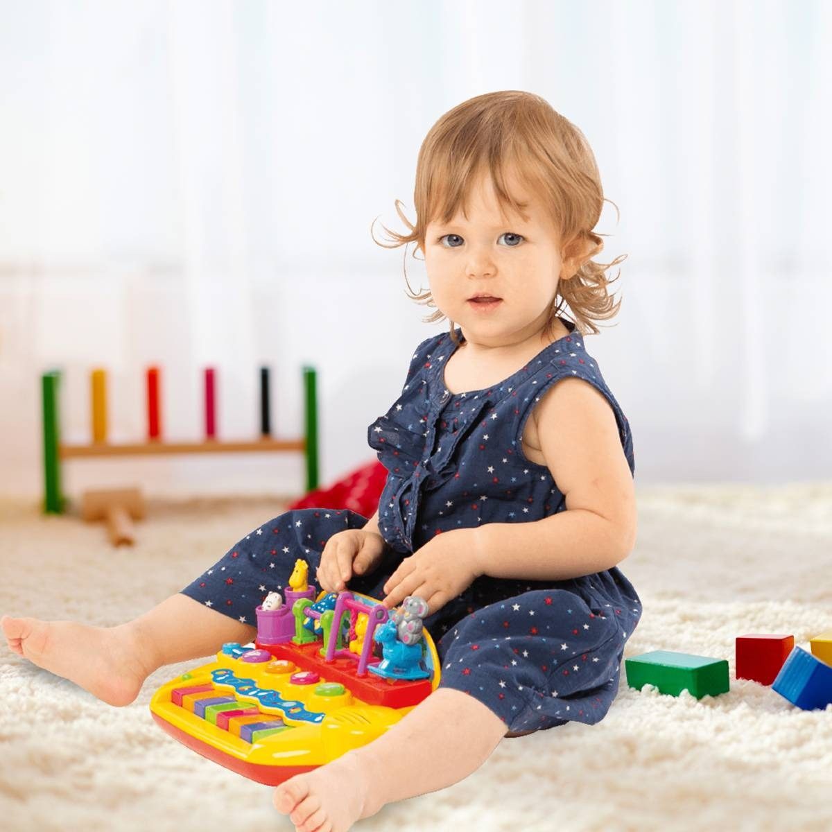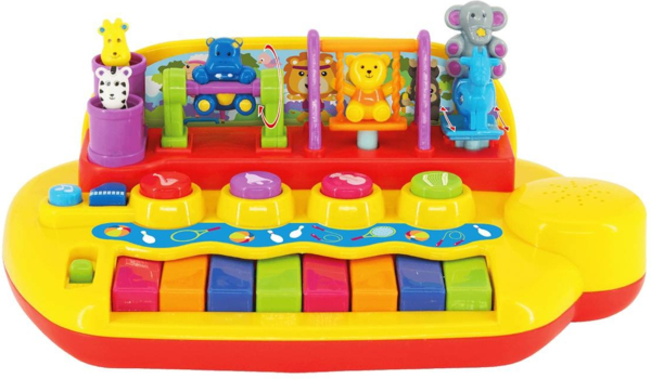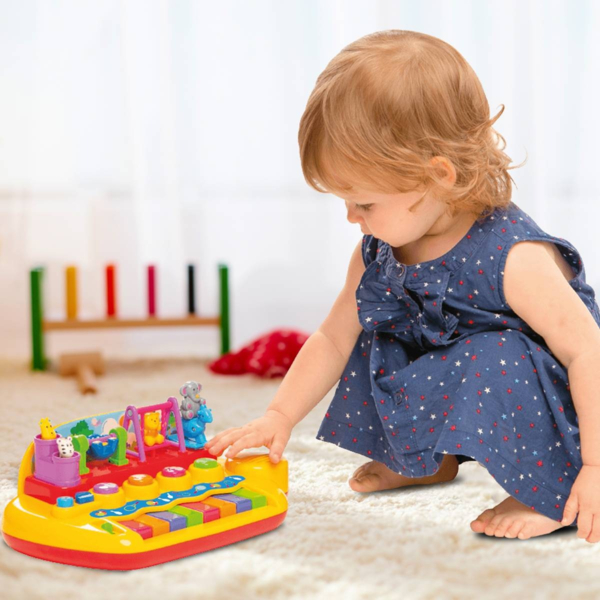 - На игровой панели размещены фигурки животных, которые весело двигаются, когда малыш играет на пианино или слушает песенки или мелодии.