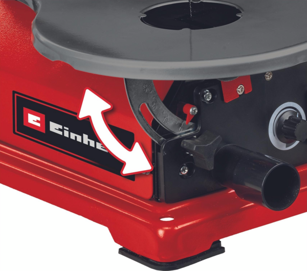 Для облегчения резки под углом рабочий стол из прочной стали можно наклонять на угол до 47°. С помощью угломера, расположенного на нижней стороне стола, можно точно определить необходимый угол.