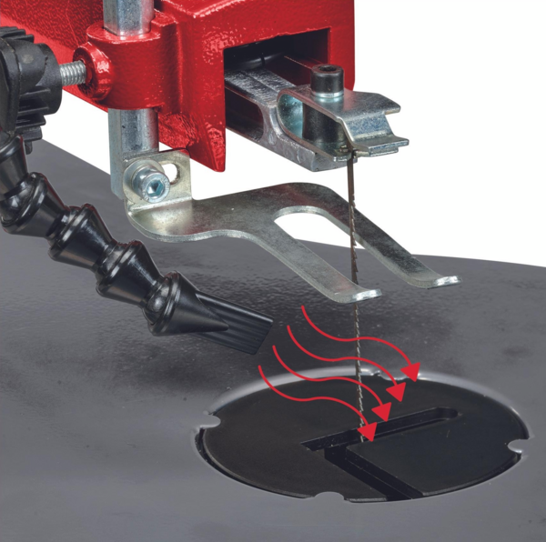 Встроенный вентилятор нагнетает воздух, чтобы удалить древесную пыль и стружку с рабочего стола. Это обеспечивает оптимальный обзор пильного диска, что облегчает выполнение точных распилов.