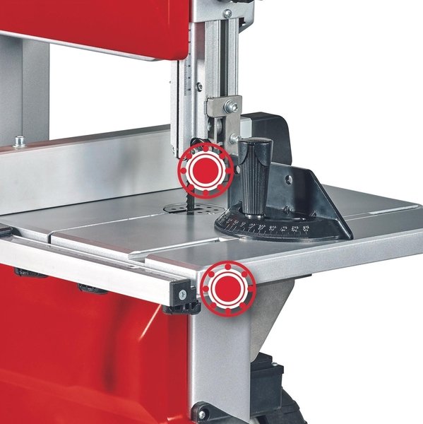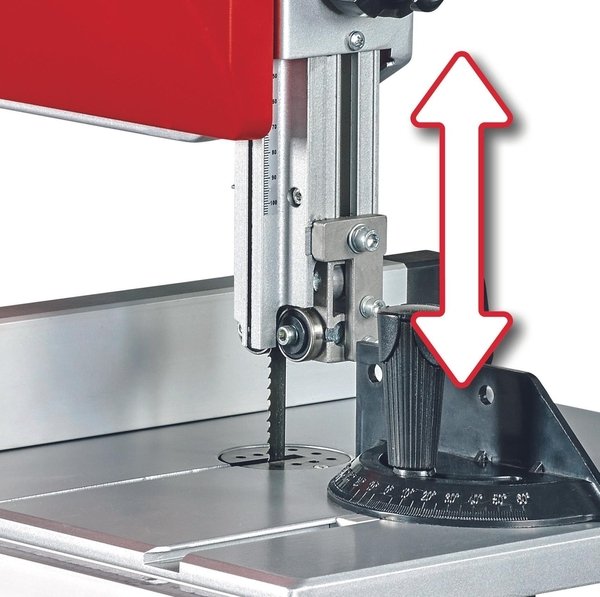 Регулировка высоты без инструментов служит не только для выполнения точных пропилов, но и для защиты полотна. Настроенный на идеальную рабочую высоту пользователя, регулятор высоты также обеспечивает безопасную и комфортную работу. Плавно регулируемый пильный стол может быть настроен в диапазоне от 0° до 45° градусов, а положение ленты можно отрегулировать с помощью верхнего ролика. Параллельный упор имеет двойное крепление и возможность быстрой регулировки для прямых пропилов. Максимальная высота реза при 45° составляет 60 мм, а при 90° - 101 мм. Угловой упор плавно регулируется в диапазоне от -60° до +60°. Многопозиционные регулируемые направляющие на шарикоподшипниках снижают вибрацию пильного полотна, обеспечивая надежную работу и более тонкий рез. Входящая в комплект толкающая палка незаменима для безопасной работы на ленточной пиле. Выключатель нулевого напряжения обеспечивает защиту в случае перебоев в подаче электроэнергии во время работы. Ленточная пила оснащена 36-миллиметровым разъемом для вытяжки, а также встроенной лампой для освещения рабочего стола.