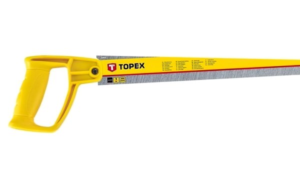 Ножовка для отверстий TOPEX длина режущего лезвия 300 мм. Предназначена для вырезания отверстий или других сложных форм. Режущее лезвие изготовлено из высококачественной закаленной стали. Шаг 9 зубьев на дюйм делает работу более эффективной. Эргономичная пластмассовая ручка позволяет точно вести ножовку, а благодаря антискользящему покрытию ножовка не выскальзывает из руки, обеспечивая, тем самым, высокий комфорт работы. Бренд TOPEX предназначен для домашних мастеров.