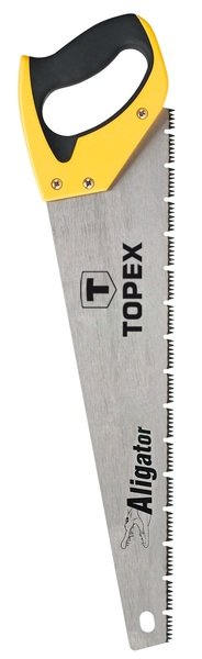 Ножовка Aligator TOPEX. Трехсторонняя заточка и закалка зубьев значительно снижают сопротивление резанию, а также облегчают распиловку древесины вдоль волокон.