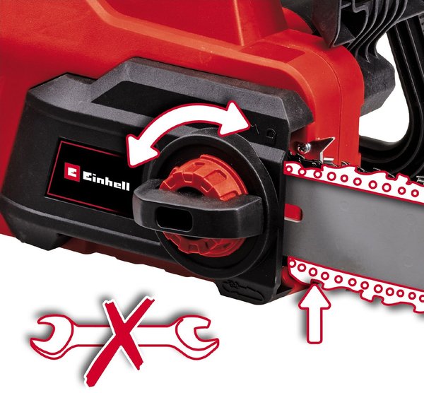 Натяжение цепи можно легко и без лишних усилий натянуть без использования дополнительных инструментов, вращая винт натяжения цепи до необходимой длины, а затем зафиксировать его, когда цепь будет идеально натянута. Правильное натяжение цепи является залогом безупречных результатов резки.
