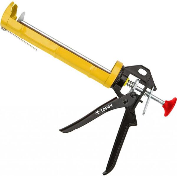 Пистолет для силикона TOPEX конструкция из стали и алюминия. Находит применение при ремонтных и отделочных работах. Лаковое покрытие защищает от повреждений. Бренд TOPEX предназначен для домашних мастеров.