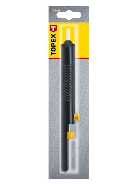 Оловоотсос TOPEX длиной 190 мм. Облегчает удаление олова при распайке. Значительно ускоряет работу и повышает ее комфорт. Бренд TOPEX предназначен для домашних мастеров.