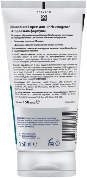 Питательный крем для ног Neutrogena «Норвежская формула» имеет обновленную формулу, обогащенную успокаивающим бисабололом, которая обеспечивает интенсивное увлажнение с первых дней использования, превращая сухую кожу в мягкую и шелковистую.