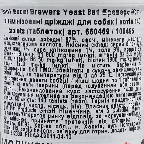 - Пивные дрожжи для кошек и собак 8in1 Excel Brewers Yeast таблетки 140шт