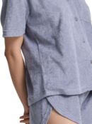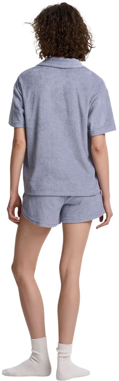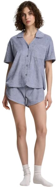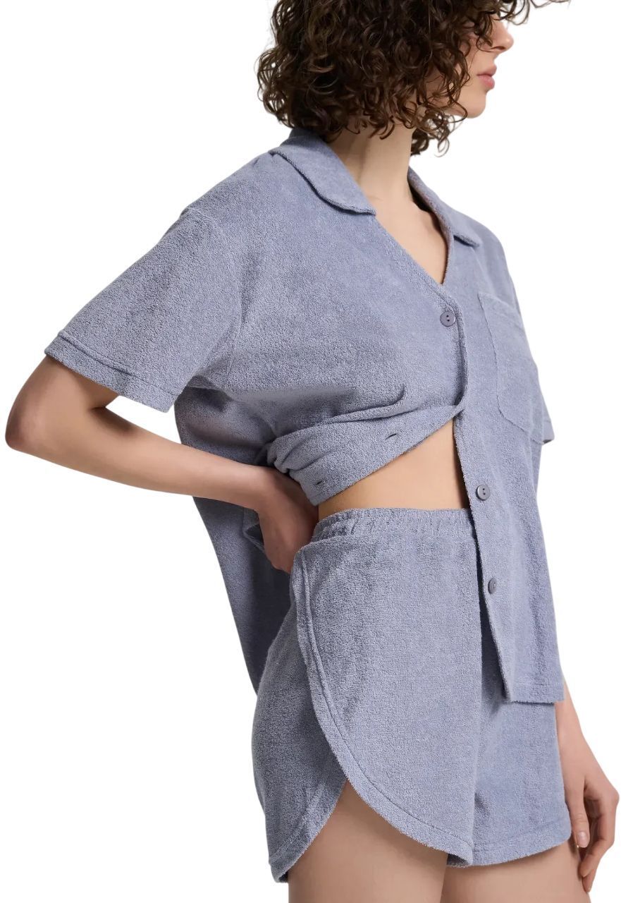 Женская пижама из мягкой махровой ткани — идеальный выбор для комфортного отдыха и сна. Комплект состоит из рубашки свободного кроя и шорт на эластичном поясе. Рубашка имеет классический отложной воротник, короткие рукава и удобную застежку на пуговицы. Небольшой накладной карман на груди подчеркивает стильность модели. Шорты с мягким поясом и шнурком обеспечивают комфортную посадку, а фигурный крой добавляет легкости и свободы движений. Благодаря приятной на ощупь махровой ткани пижама прекрасно пропускает воздух, сохраняя ощущение уюта и тепла. Идеально подходит для домашней носки и комфортного сна.