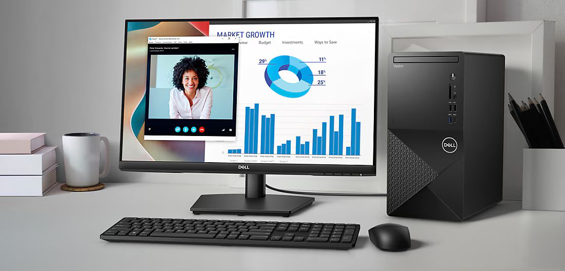 Подключайтесь к другим мониторам и устройствам с помощью порта HDMI 1.4b или Display Port . Оцените быструю передачу данных с помощью порта USB Type-C. Созданный для завтрашнего дня, Vostro Desktop предоставляет гибкие возможности расширения в соответствии с растущими потребностями вашего бизнеса. Повысьте производительность, добавив твердотельный накопитель M.2 PCIe емкостью до 1 ТБ или комбинированный диск SATA 7200 об/мин емкостью 2 ТБ для беспрепятственной работы в многозадачном режиме. Наслаждайтесь быстрым доступом к файлам и мультимедиа благодаря удобству двух дисков. Как и память, вы всегда можете обновить ее позже, добавив до 64 ГБ.