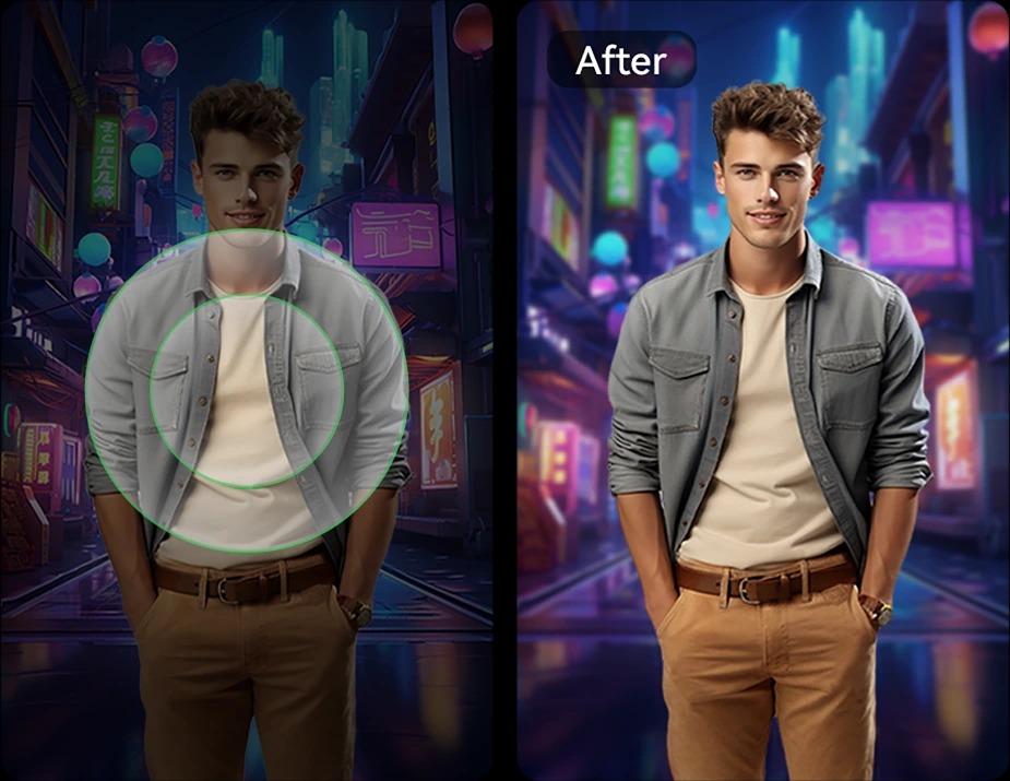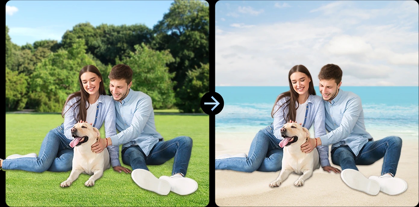 С высокой точностью наш искусственный интеллект идентифицирует объект на ваших фотографиях, позволяя вам без труда заменить фон. Мгновенно преобразуйте свои изображения с помощью новой сцены и новой атмосферы.