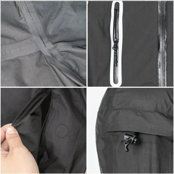 Крой дождевика Nh21fs038 предусматривает ряд мелких элементов, повышающих уровень комфорта при ношении изделия. Широкий капюшон и высокий воротник защищают голову и шею от намокания, а по краям длинных рукавов вшиты эластичные петли. В них можно продвигать большие пальцы, чтобы рукава не взлетали с рук во время движения. Плащ закрывается спереди с помощью молнии Ykk, как и грудной карман, дополнительно обрамленный светоотражающей вставкой.