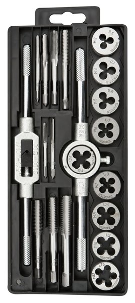 Набор метчиков и плашек 20 шт. TOPEX - это превосходное решение для каждого домашнего мастера. В удобной упаковке имеются вороток для метчиков, а также плашкодержатель.